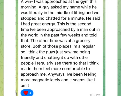 Alexis was exhausted from doing all the work - planning dates, initiating texts, carrying the emotional labor. We reprogrammed her belief that love = struggle. She stopped chasing and started receiving. Now she sits back while he plans thoughtful dates and pursues her - and it feels natural, not forced.